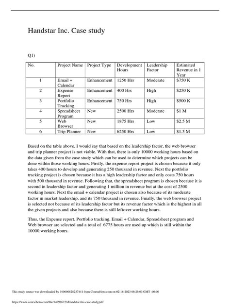 Read Online HANDSTAR INC CASE SOLUTION Reader Open Library
